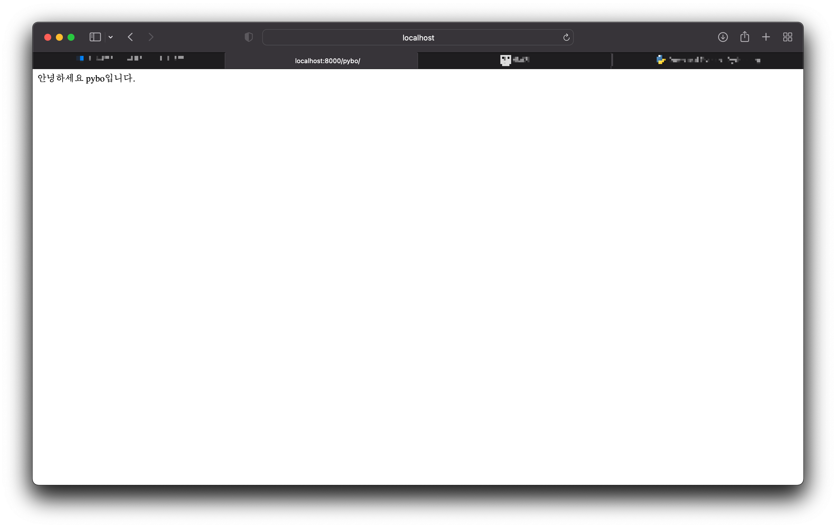 브라우저에서 http://localhost:8000/pybo 페이지를 요청했을때 "안녕하세요 pybo입니다." 라는 문자열을 출력해보자