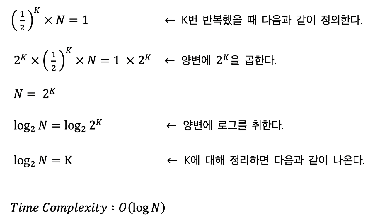 결국 시간복잡도는 O(logN) 이 되는것이다.