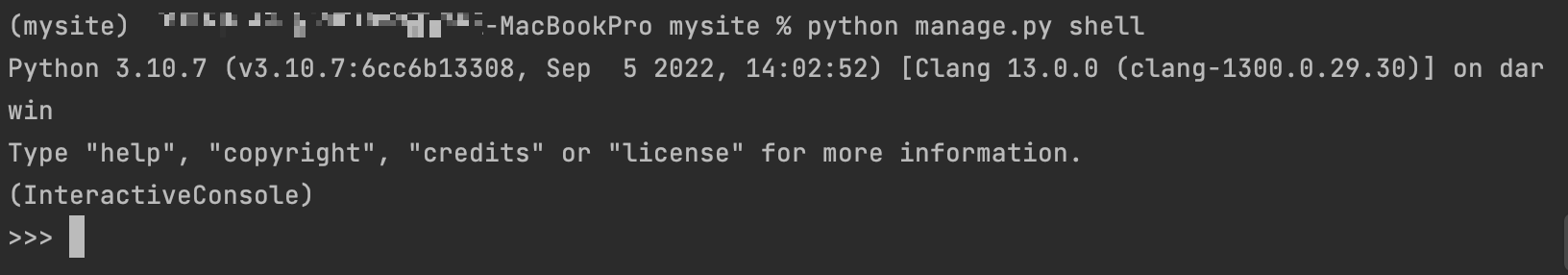 명령어를 입력하면 셸이 열린다. 반드시 장고 셸로 실행해야하는 이유는 장고 셸에는 장고에 필요한 환경들이 자동으로 설정되어 실행되기 때문이다.