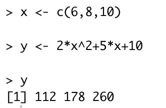 y=2x^2+5x+10에 대해 x가 각각 6, 8, 10일 때 y의 값을 각각 구한다.
