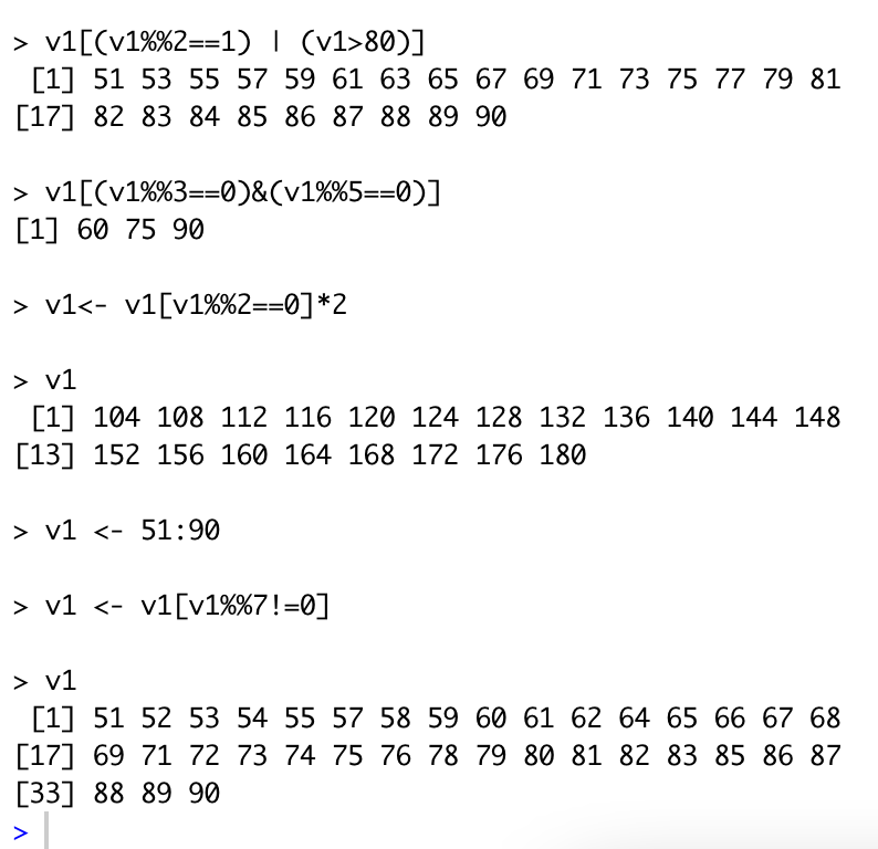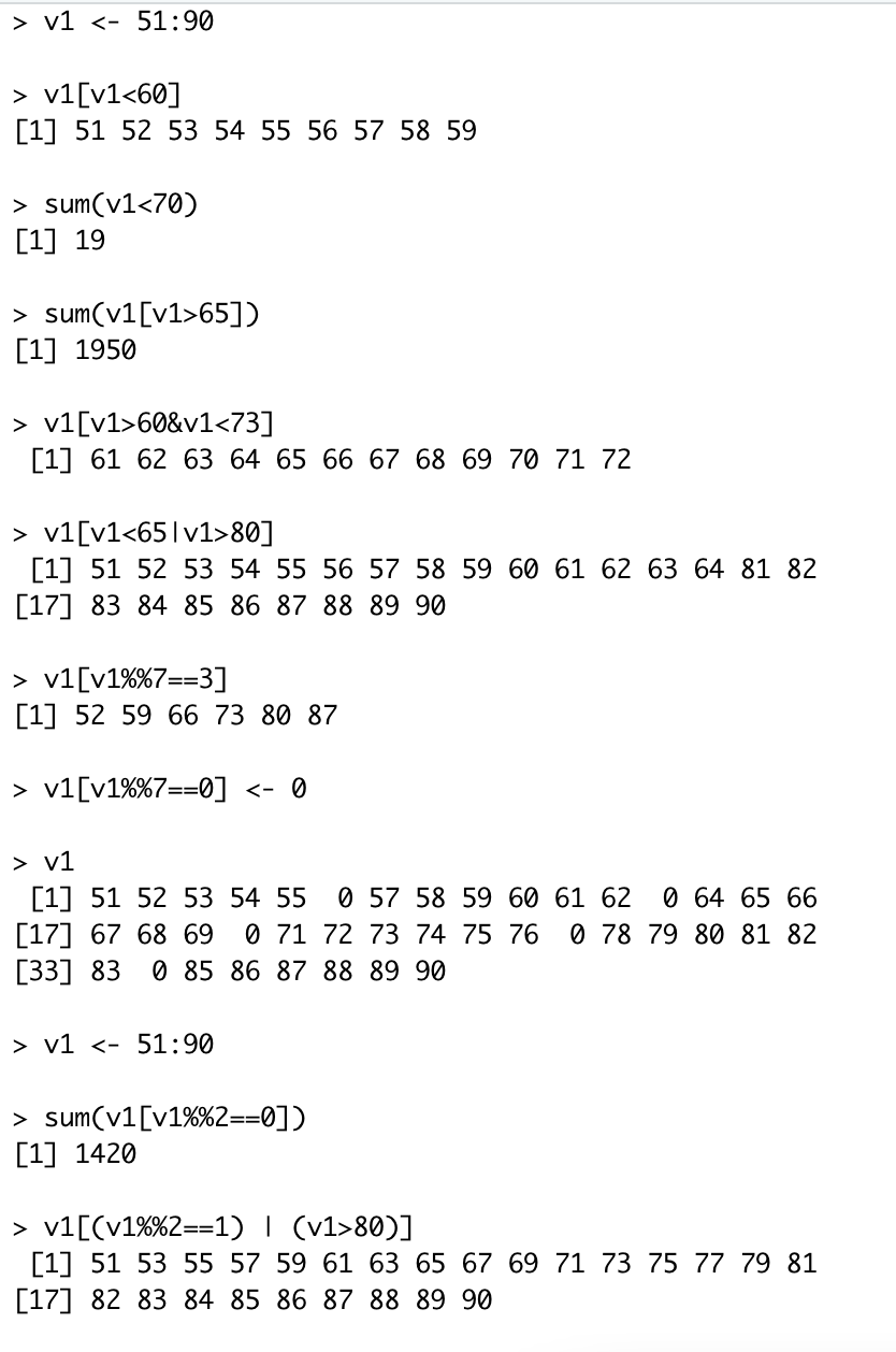 12. 다음과 같이 벡터 v1을 생성한 다음 각 문제를 수행하기 위한 코드를 작성하고 답을 구하시오(문제를 풀다 보면 v1의 내용이 변경되기도 하는데, 모든 문제는 최초의 v1을 대상으로 하여 해결할 것).