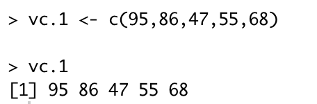 6. 95, 86, 47, 55, 68로 구성된 벡터 vc.1을 생성하고 vc.1의 내용을 출력하는 코드를 작성하시오.