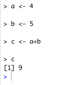 변수 a와 b에 각각 4와 5를 저장한 후 a+b의 결과를 c에 저장하고 c의 내용을 출력한다.