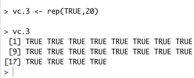 8. 20개의 TRUE로 구성된 vc.3을 생성하고 vc.3의 내용을 출력하는 코드를 작성하시오.(rep 함수 사용)