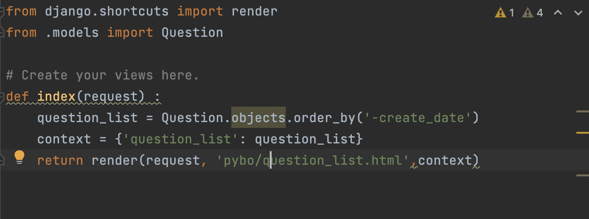 pybo/views.py 파일의 index 함수를 다음과 같이 수정하자.