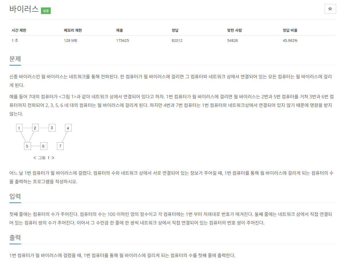 첫째 줄에는 컴퓨터의 수가 주어진다. 컴퓨터의 수는 100 이하인 양의 정수이고 각 컴퓨터에는 1번 부터 차례대로 번호가 매겨진다. 둘째 줄에는 네트워크 상에서 직접 연결되어 있는 컴퓨터 쌍