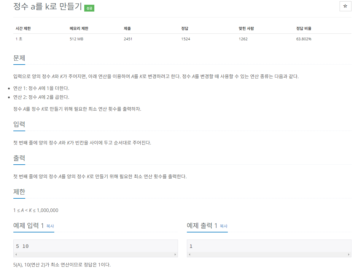25418번: 정수 a를 k로 만들기