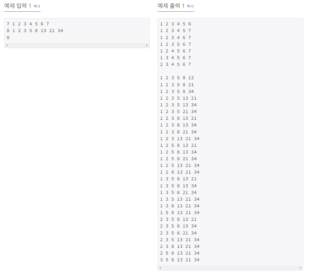 https://www.acmicpc.net/problem/6603