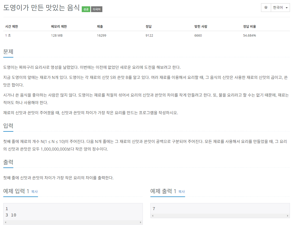 if (Math.abs(sour - bitter) < answer) { // 최솟값으로 갱신