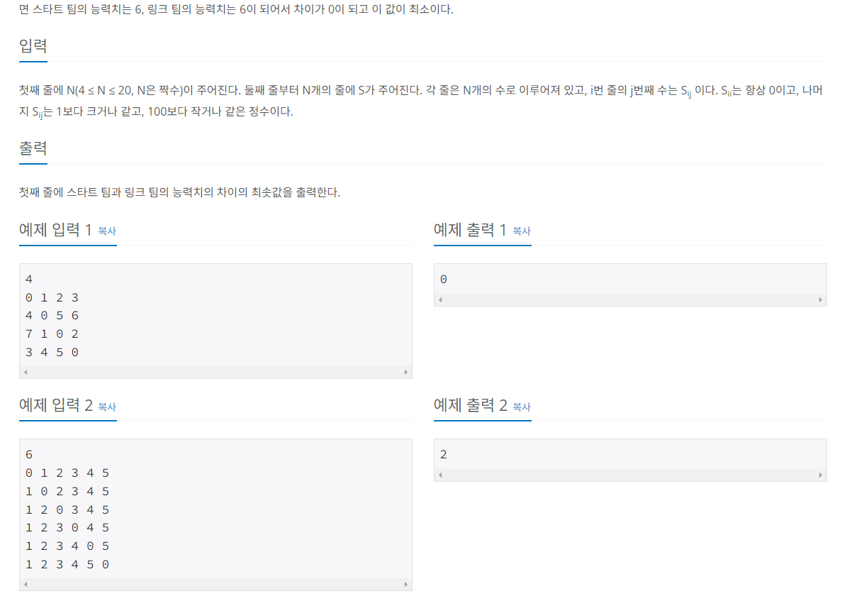 for문을 돌며 선수를 선택할 때 i를 index로주고 선수를 선택했다면 매개변수를 건네줄때 i + 1로 주어 중복탐색을 줄여 시간초과를 방지할 수 있다.