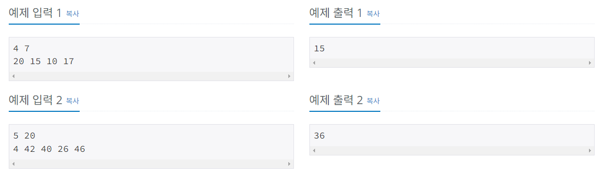 } else if (tree < M) { // 너무 적게 가져갔을 경우