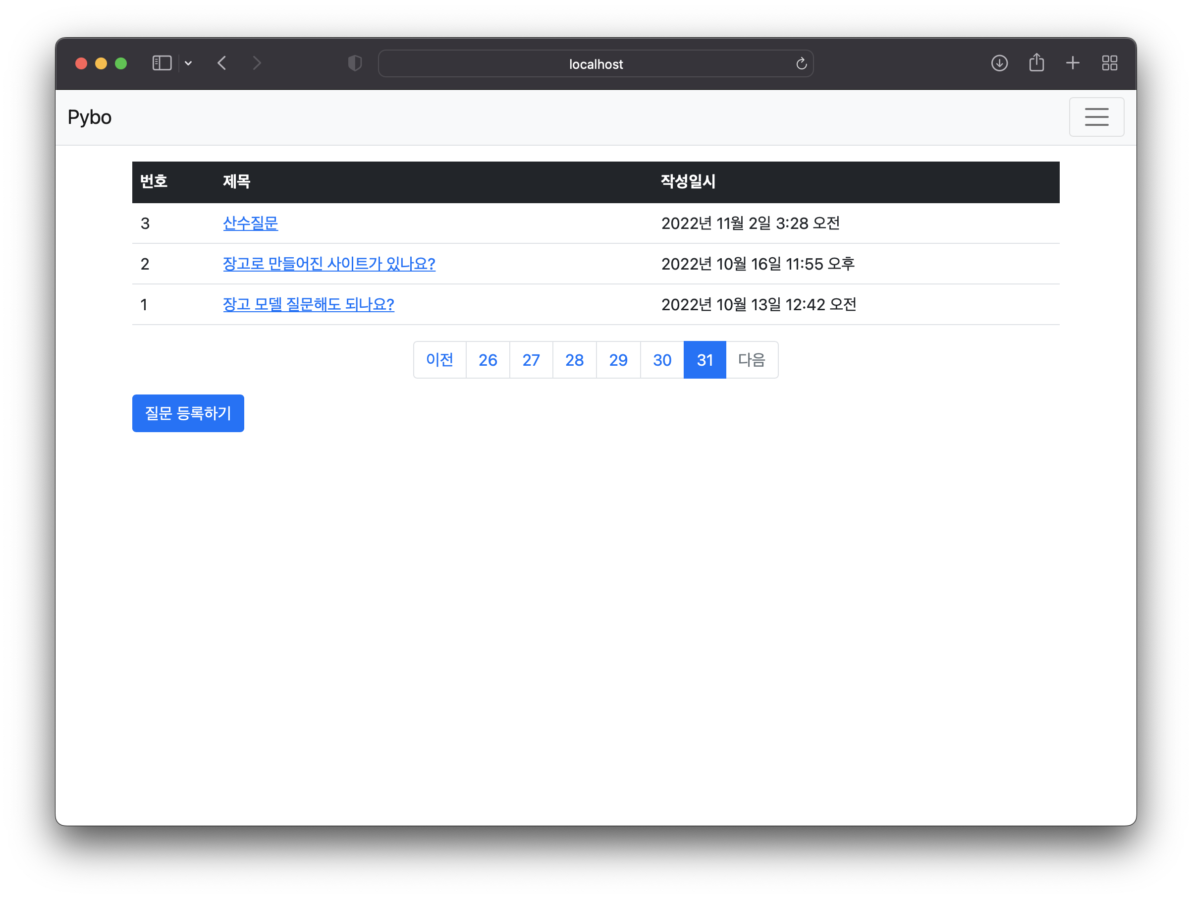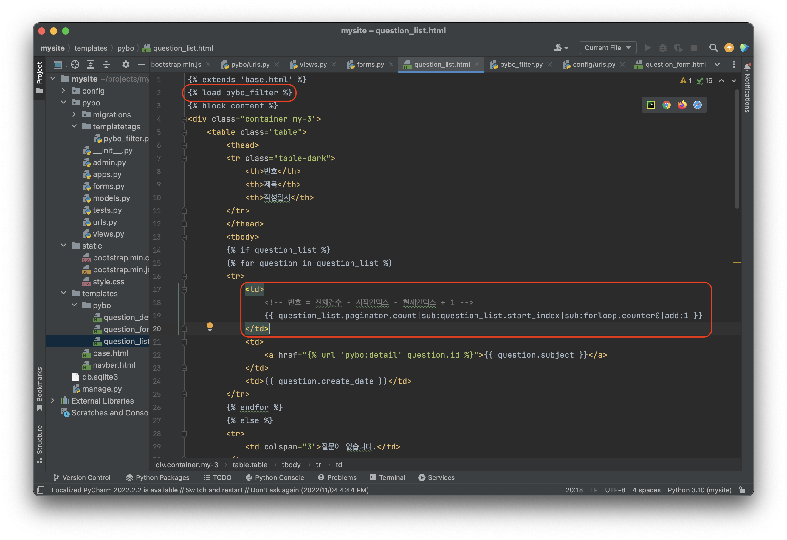 projects\mysite\templates\pybo\question_list.html 파일을 다음과 같이 수정하자.