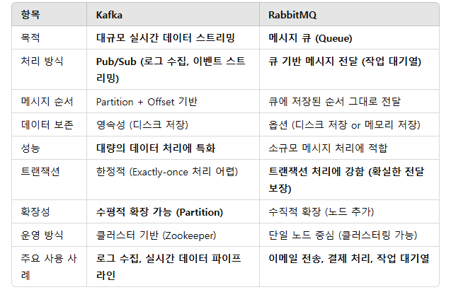 RabbitMQ와 Kafka 모두 메시지 브로커이다. 하지만 목적과 동작 방식이 꽤 다르다.
