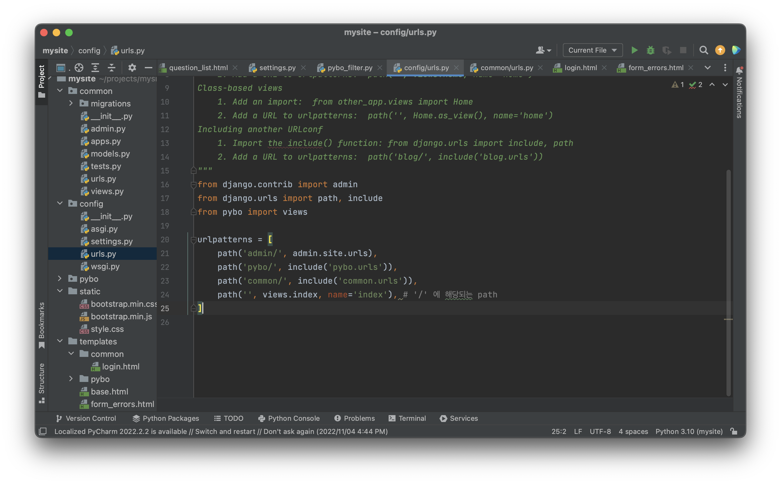 projects\mysite\common\urls.py 를 다음과 같이 수정하자.