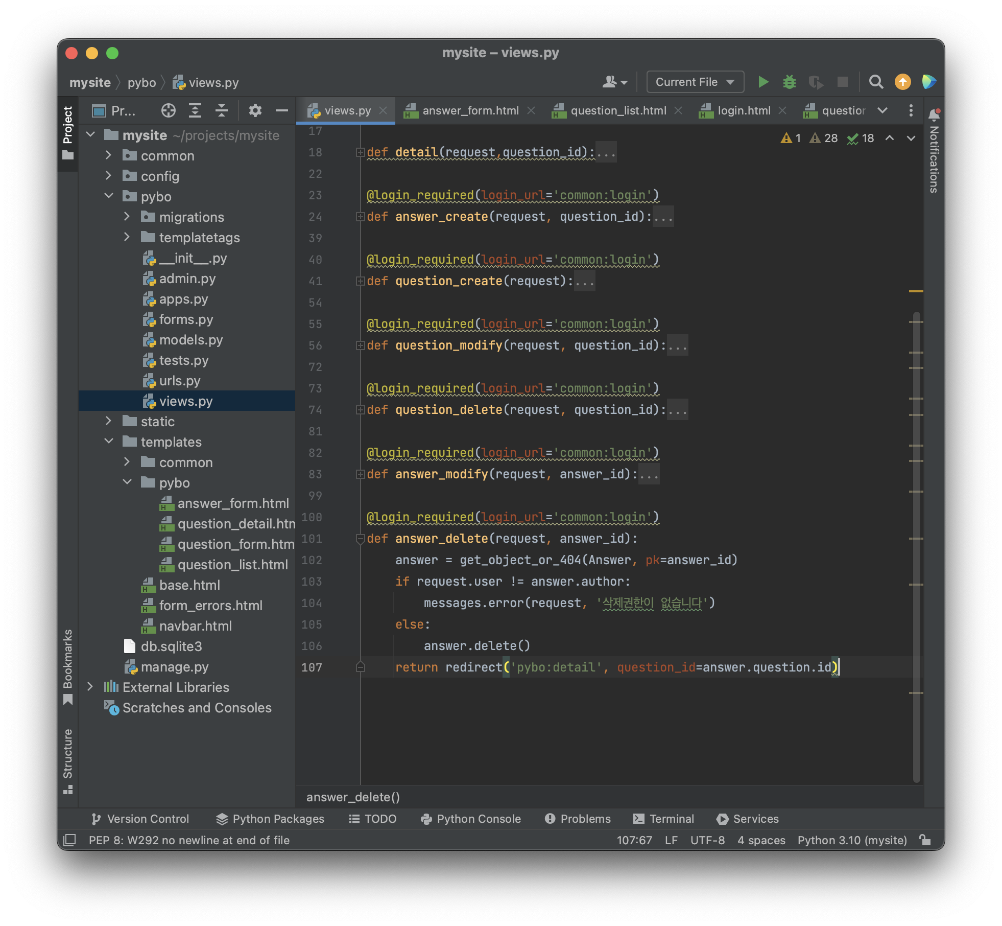 views.answer_delete 함수를 참조한다고 했기때문에 새로 작성해주자.
