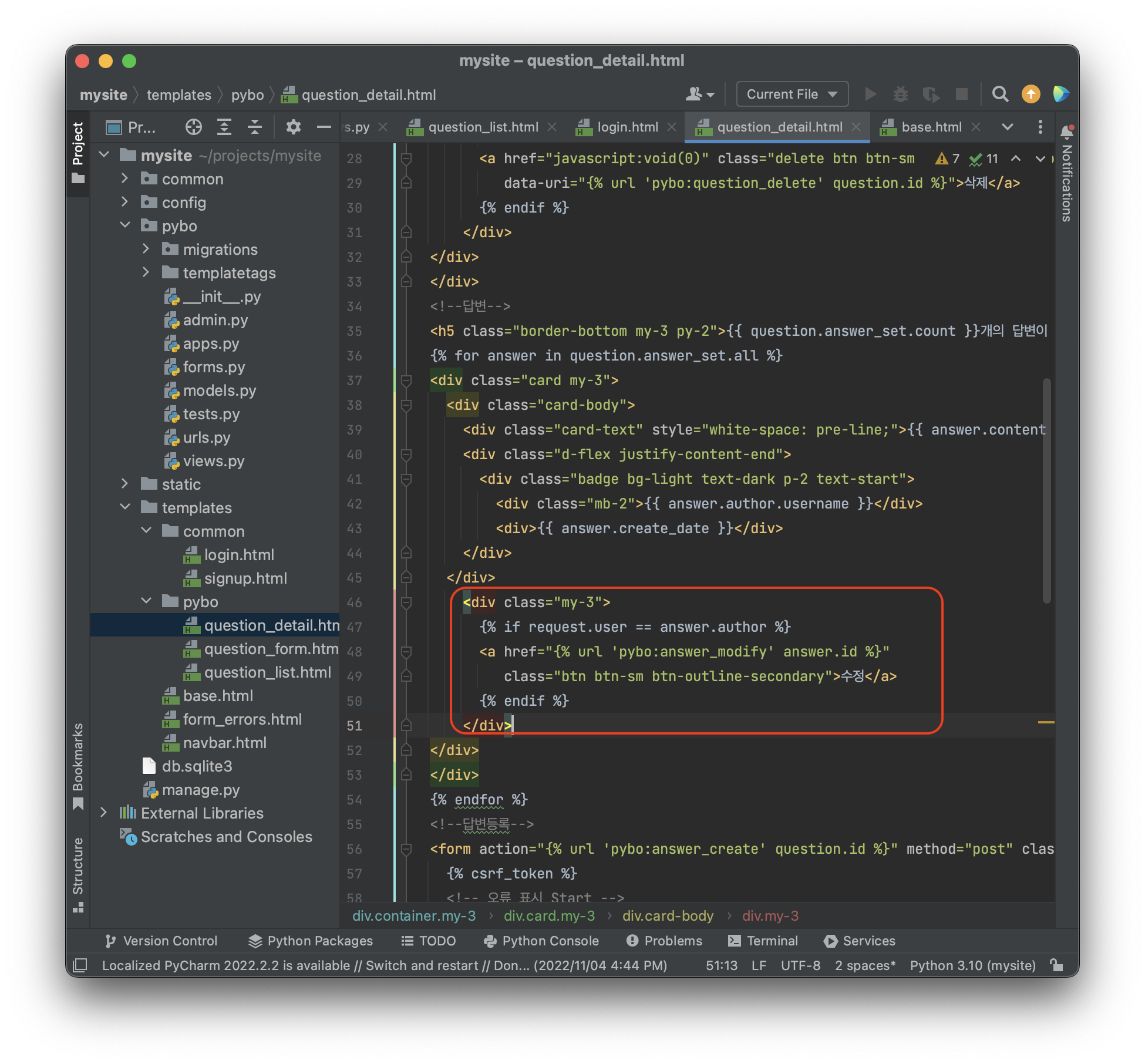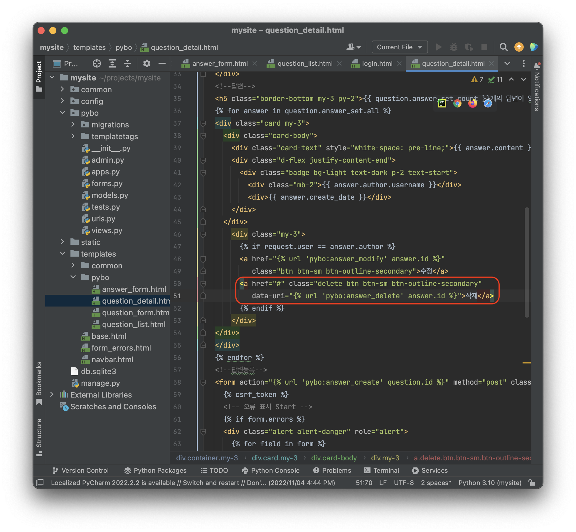 projects\mysite\templates\pybo\question_detail.html 파일을 다음과 같이 수정하자.