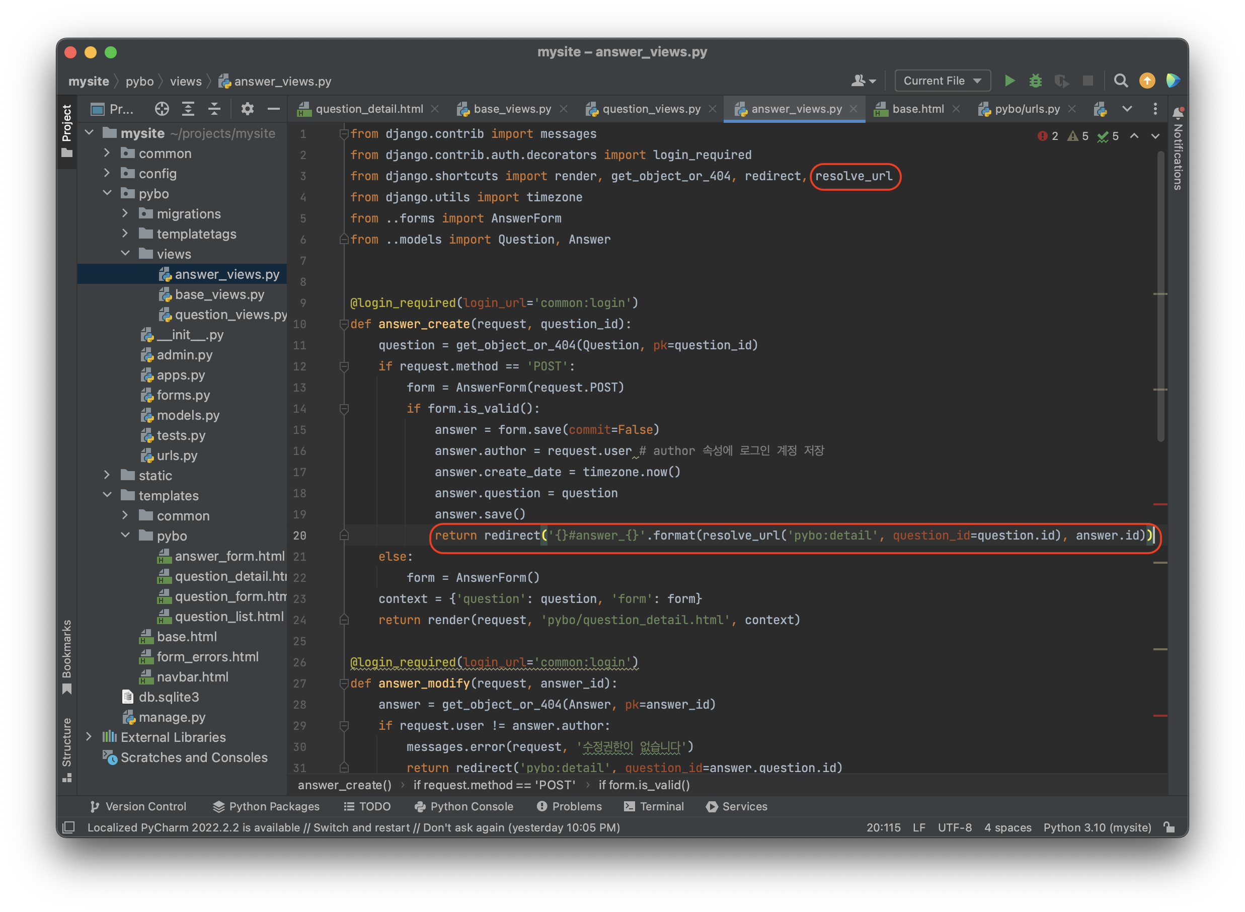 projcets\mysite\pybo\views\answer_views.py 를 수정하자.