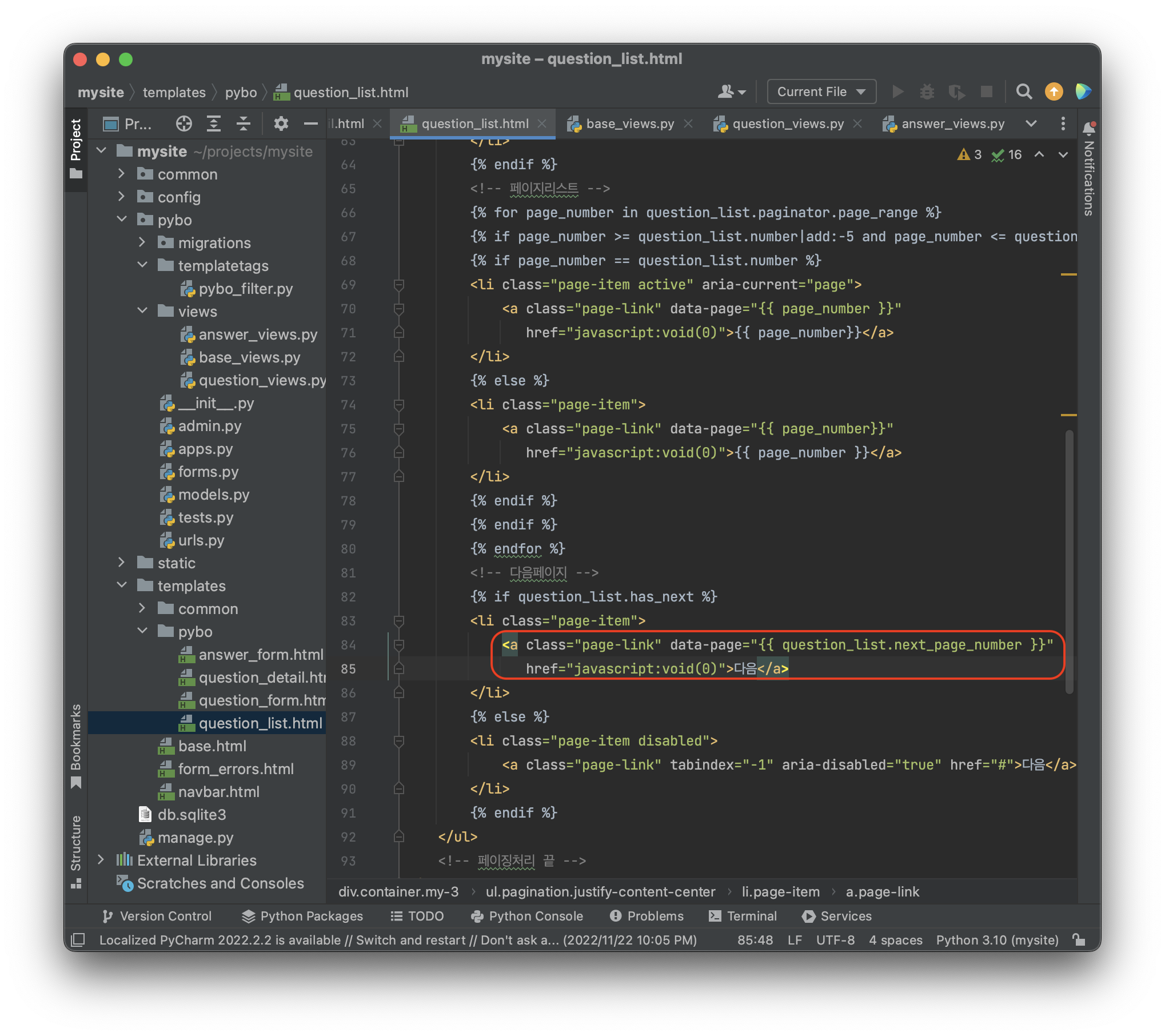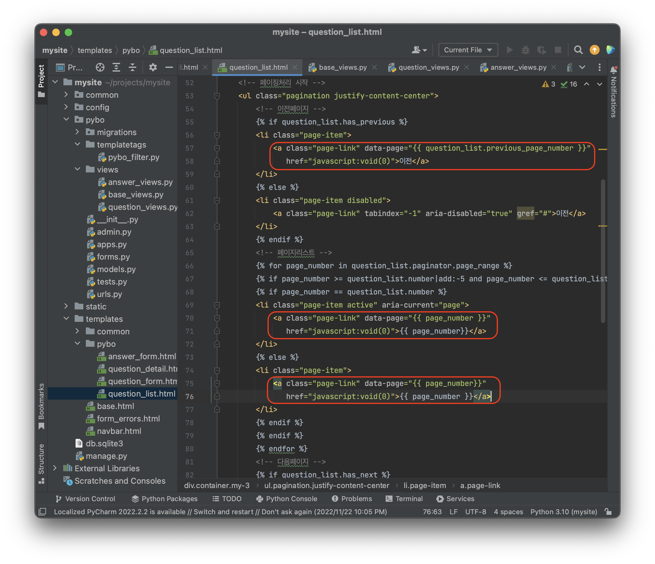 projects\mysite\templates\pybo\question_list.html 에 추가하자.