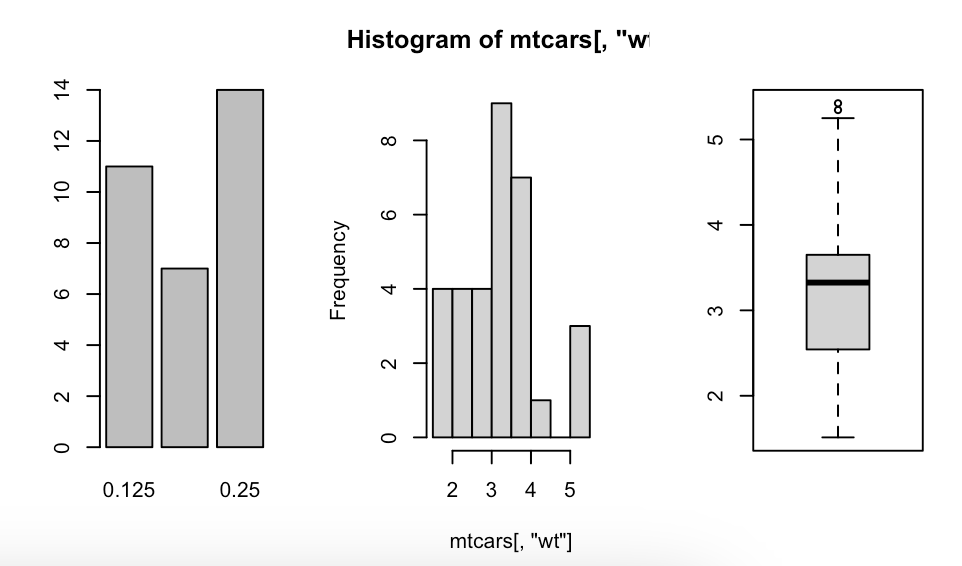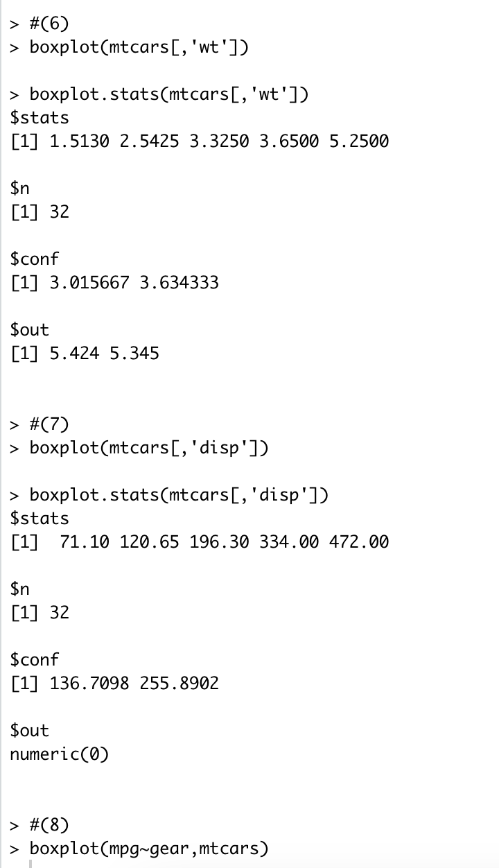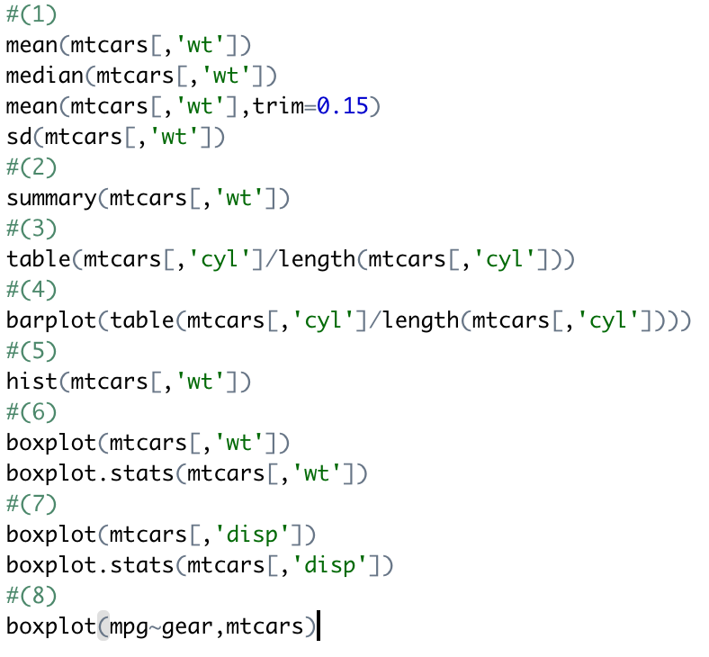 5. R에서 제공하는 mtcars 데이터셋에 대해 다음 문제를 해결하기 위한 R코드를 작성하시오.