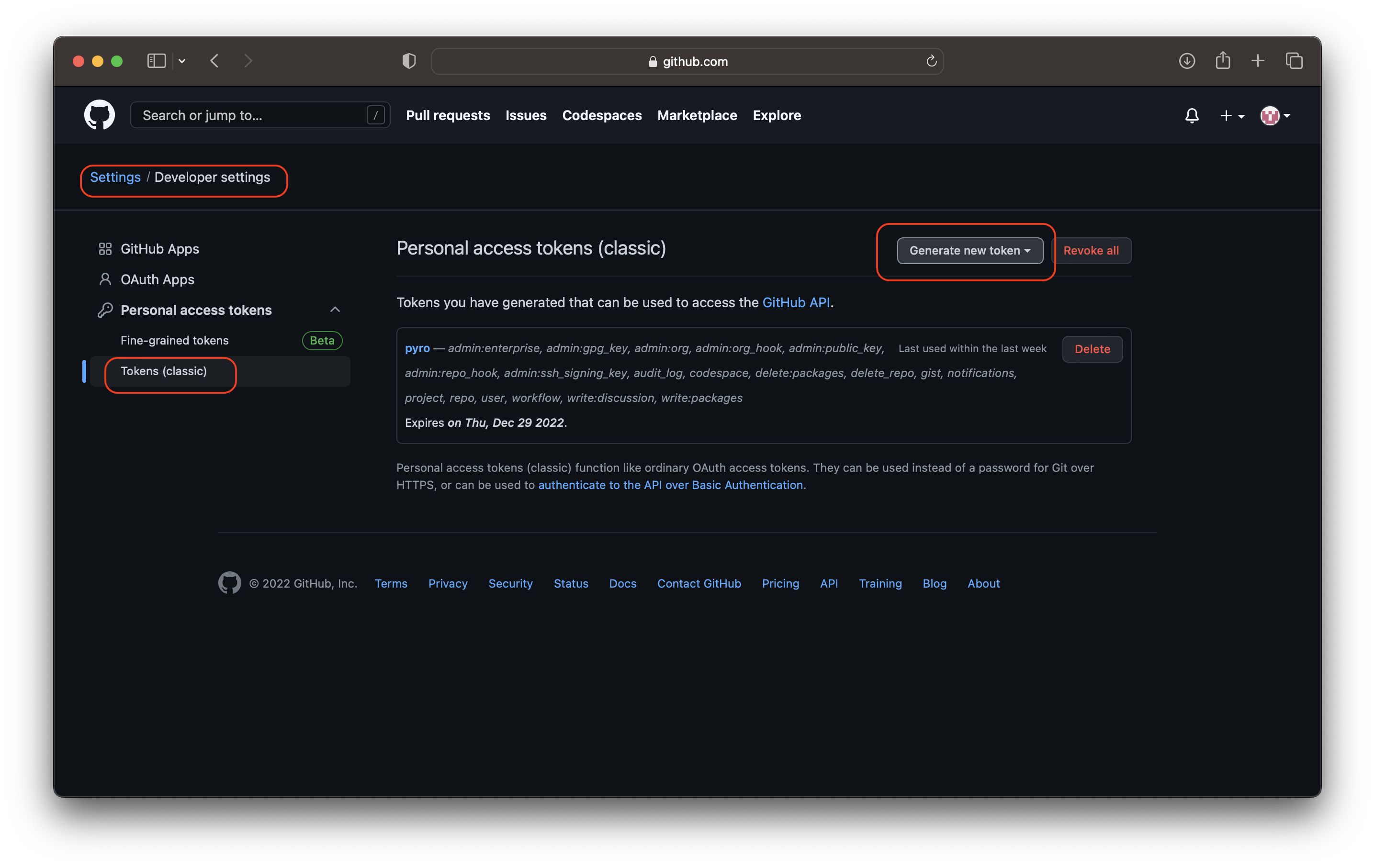 Settings - Developer settings 에 들어가 Personal access tokens 에 Tokens(classic)을 누르면 나오는 화면에서 Generate new token 을 누르면 이름을 설정하고 체크하는게 여러개 나오는데 사실 뭐가 뭔지 잘 모르겠어서 일단 다 체크했다. 그렇게 하면 코드같은게 나오는데 그것을 복사 붙여넣기 하면 된다.