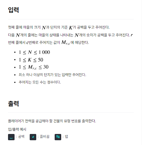 //단지의 크기 최소 1, 건물의 유형(1~30)