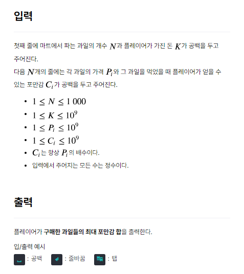 //과일의 개수는 배열에 담고, 과일 1조각당 포만감은 맵에 담는다. 맵의 키는 과일 개수의 인덱스와 같다.