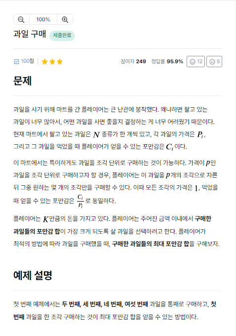 //1조각당 포만감이 높은 순으로 내림차순한다