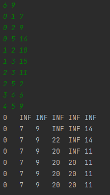 | 1 | 0 | 7 | 9 | INF | INF | 14 |