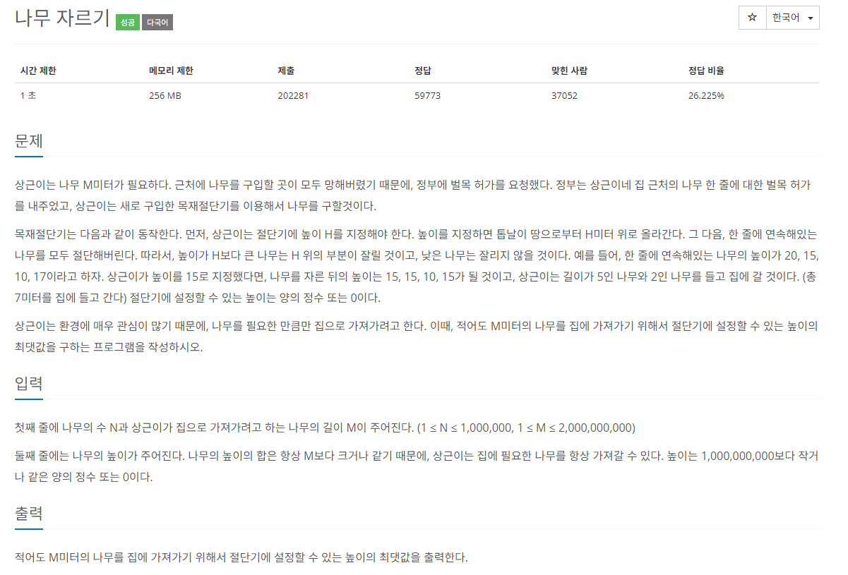 } else if (tree < M) { // 너무 적게 가져갔을 경우