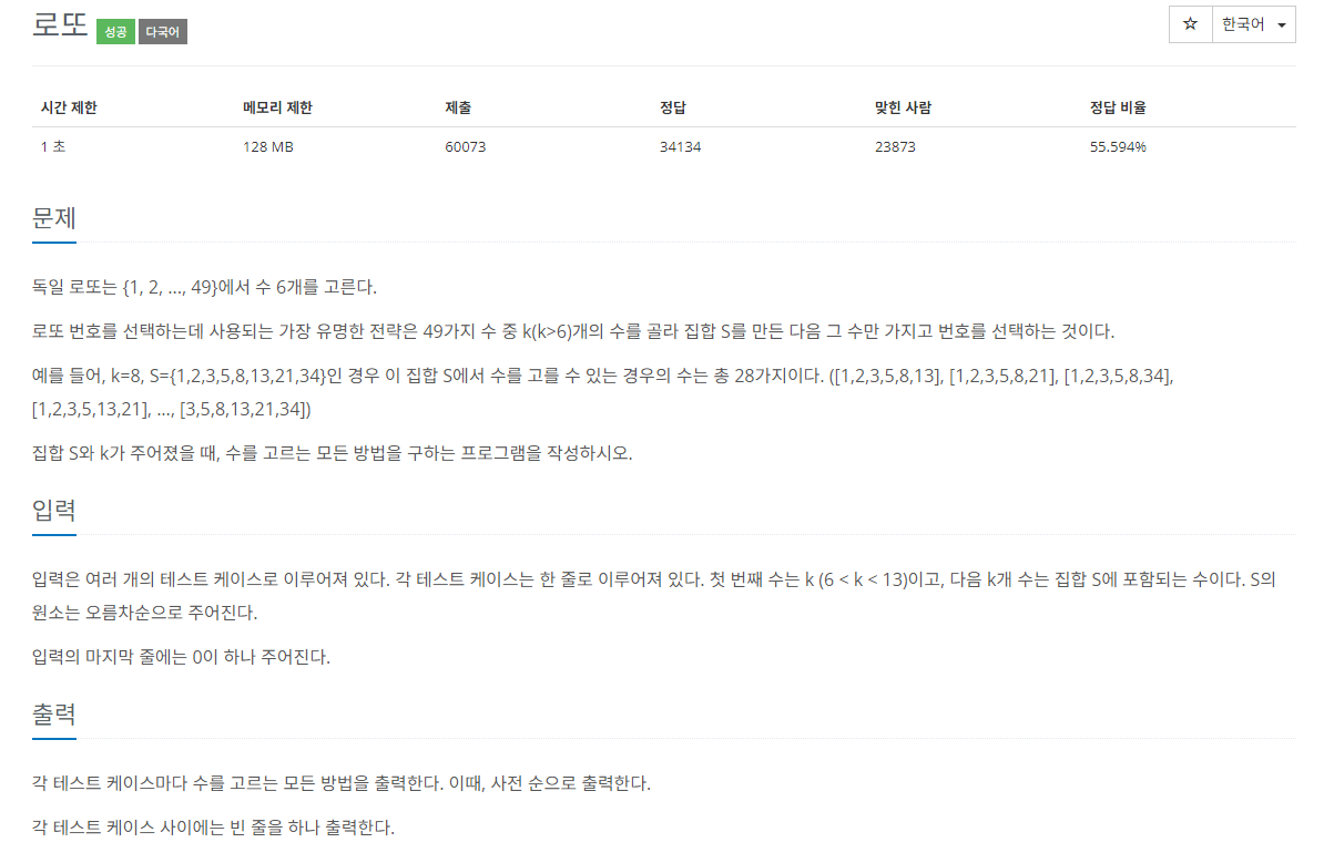| 백준 6603: 로또 [JAVA] (0) | 2024.05.08 |