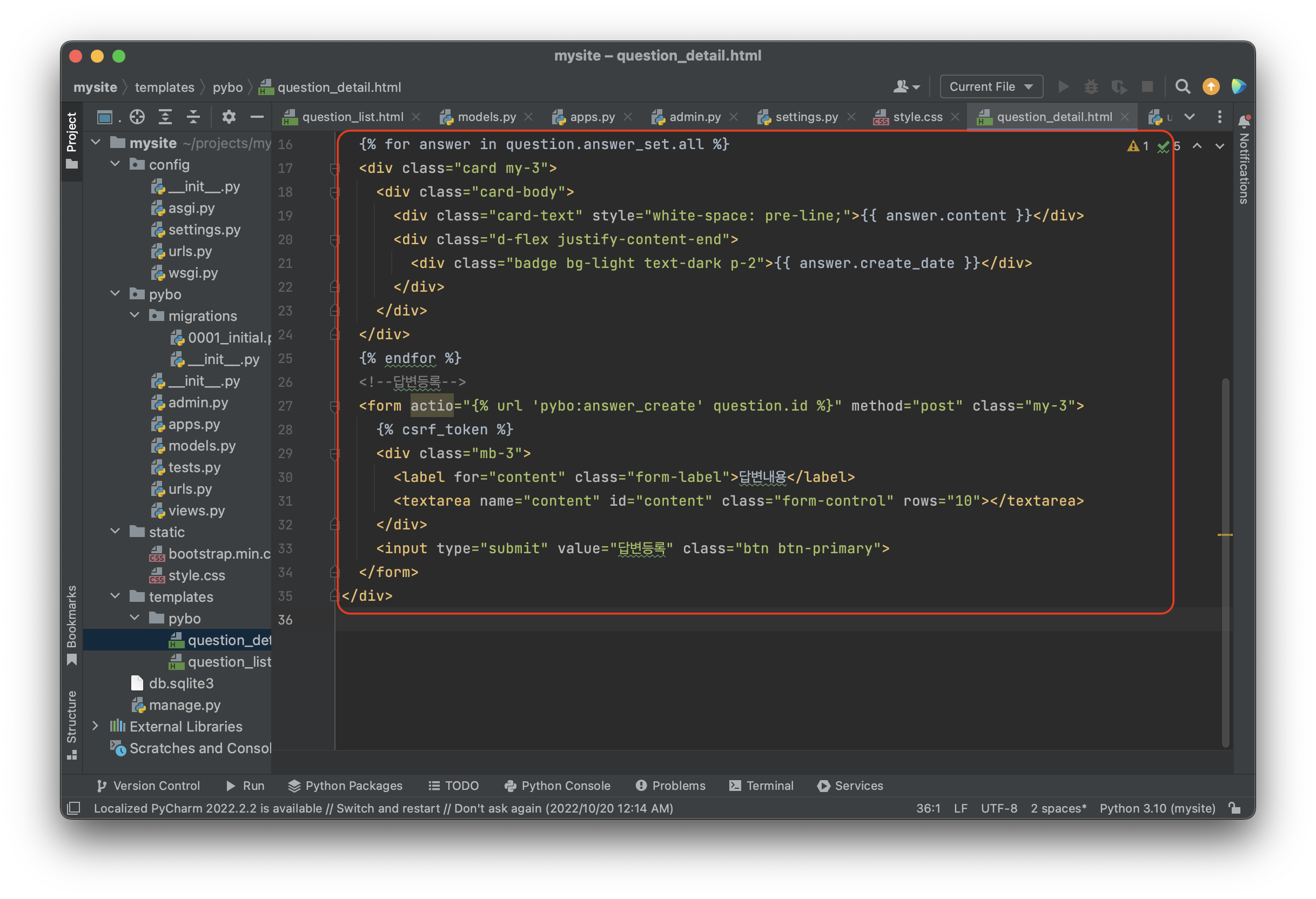 이제 projects\mysite\templates\pybo\question_detail.html 도 수정하자.