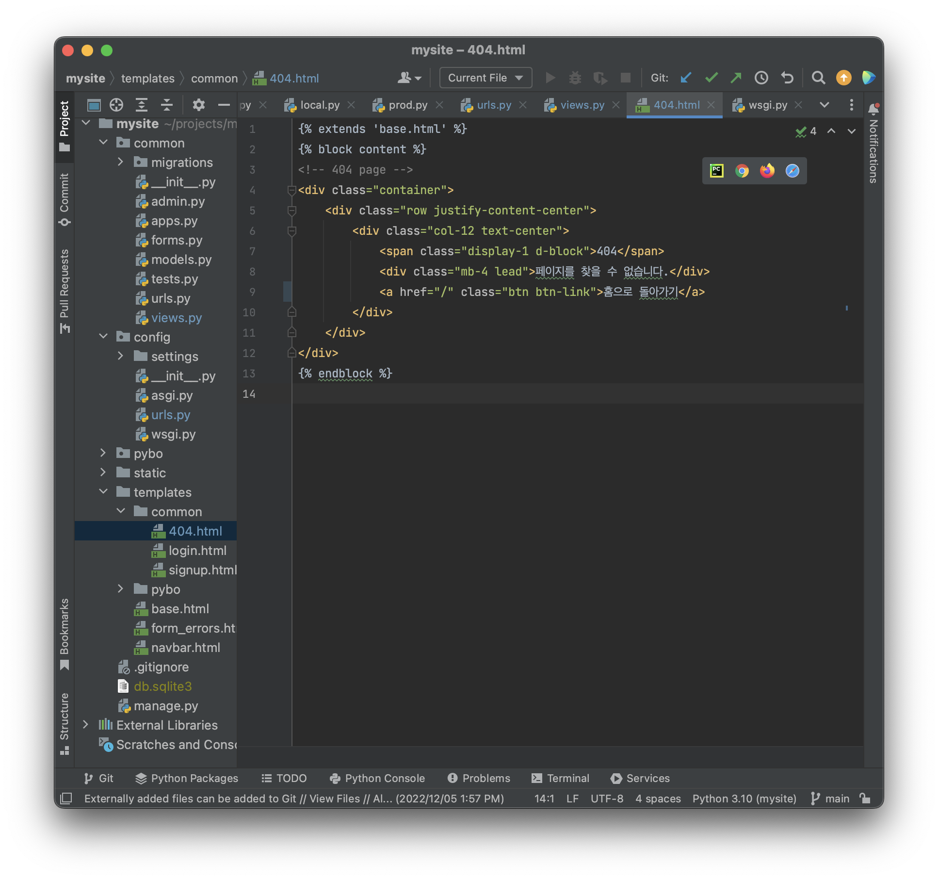 projects\mysite\templates\common\404.html 을 새로 만들고 다음과 같이 작성해주자.