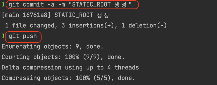 그리고 STATICFILES_DIRS = [] 도 추가해준다. 추가해주는 이유는 base.py 파일에는 STATICFILES_DIR 항목이 이미 있는데 prod.py 에 다시 빈 값으로 설정하는 이유는 STATIC_ROOT 가 설정된 경우 STATICFILES_DIRS 리스트에 STATIC_ROOT 와 동일한 디렉토리 포함되어 있으면 서버 실행시 오류가 발생하기 때문이다. 이를 방지하기 위해 prod.py 파일에 STATICFILES_DIRS = [] 로 설정했다.