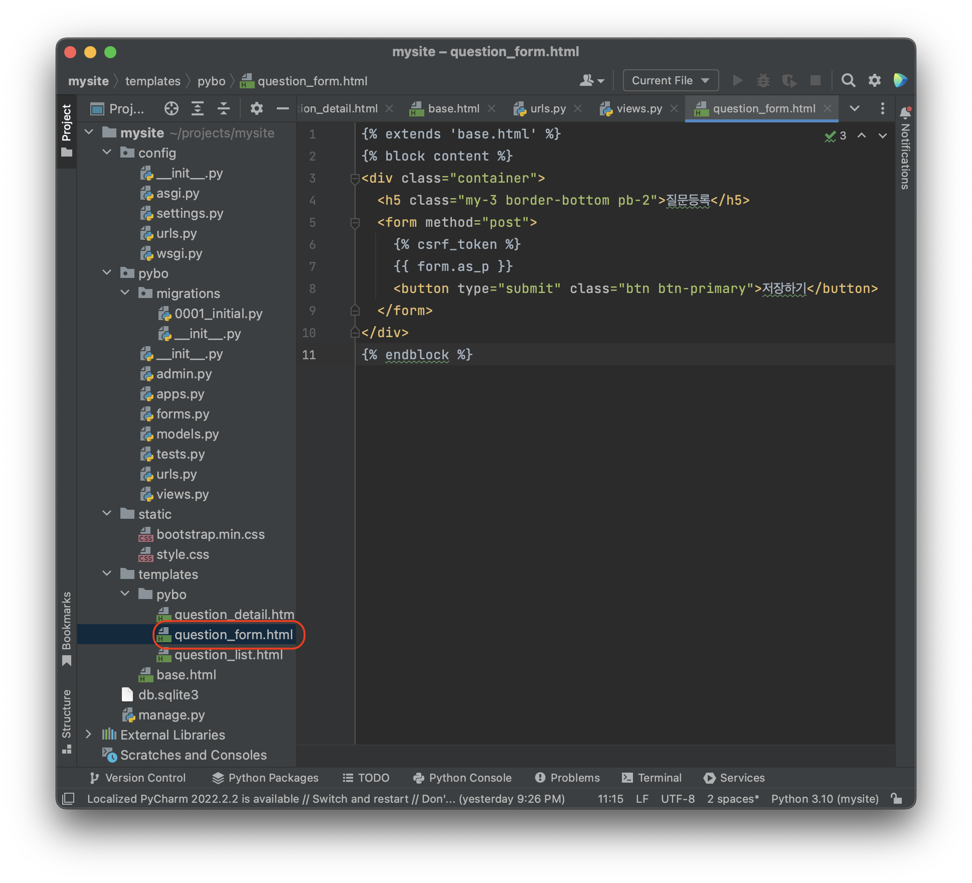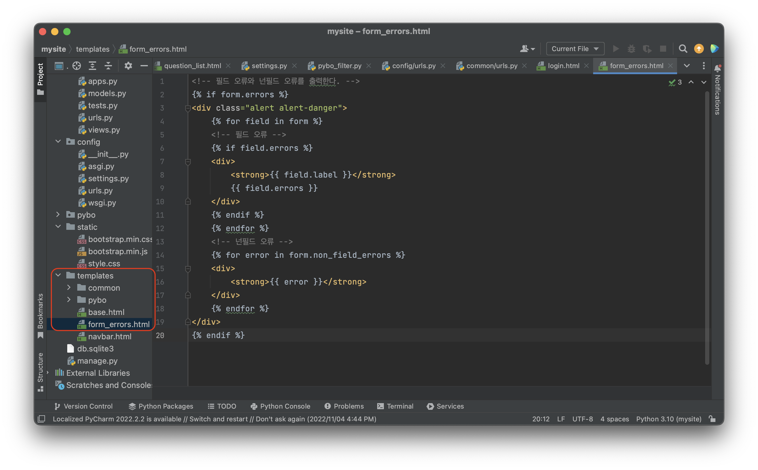 projects\mysite\templates\form_errors.html 파일을 새로 만들고 작성하자.