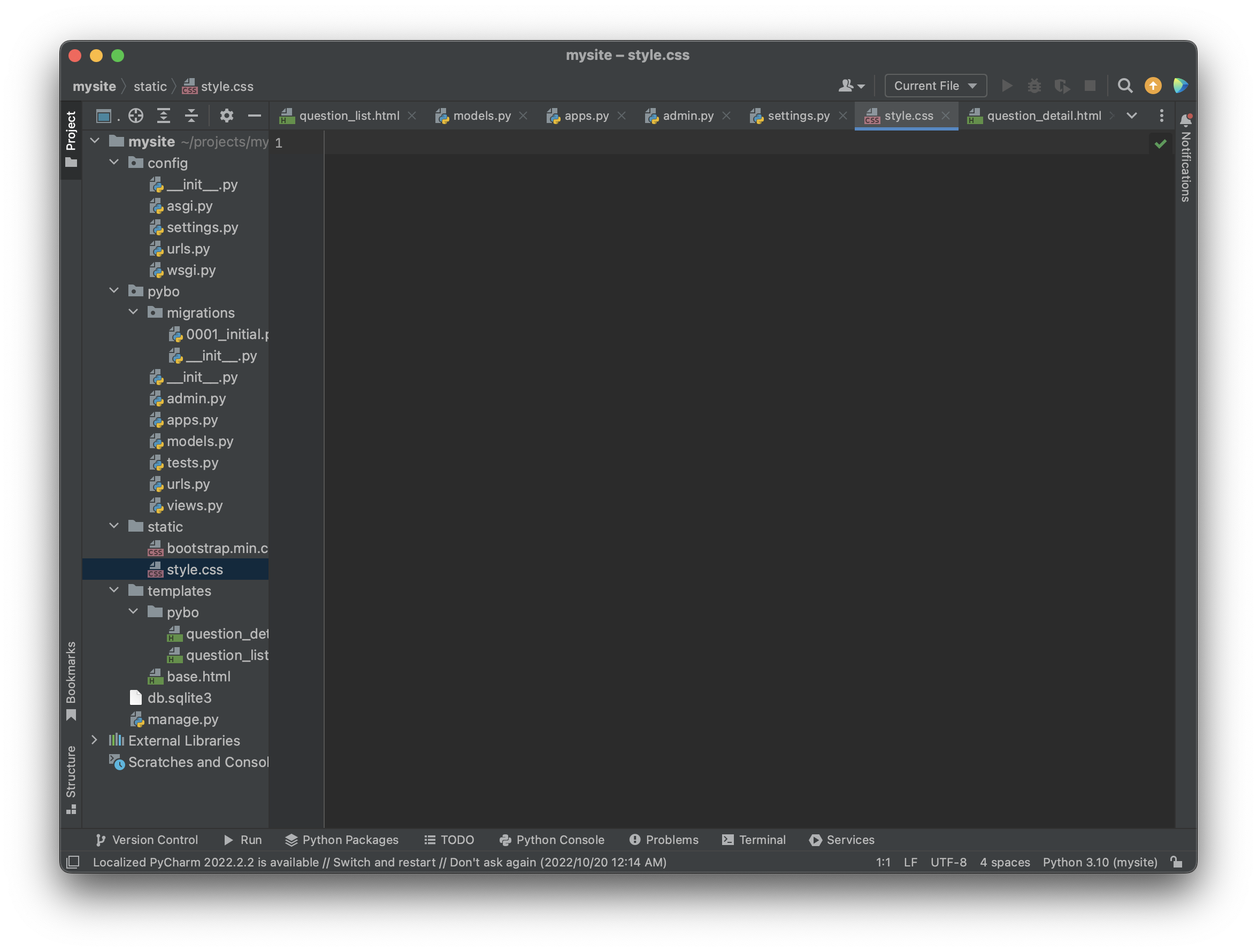 아직 common 앱에 어떤 기능도 구현하지 않았으므로 urlpatterns 는 빈상태로 놔두면 된다.