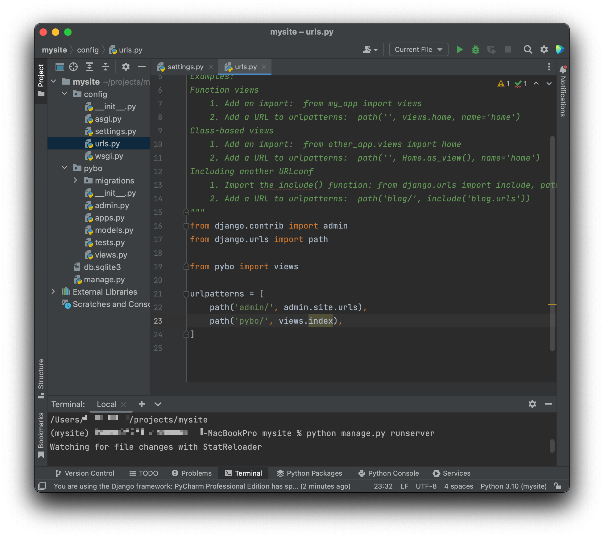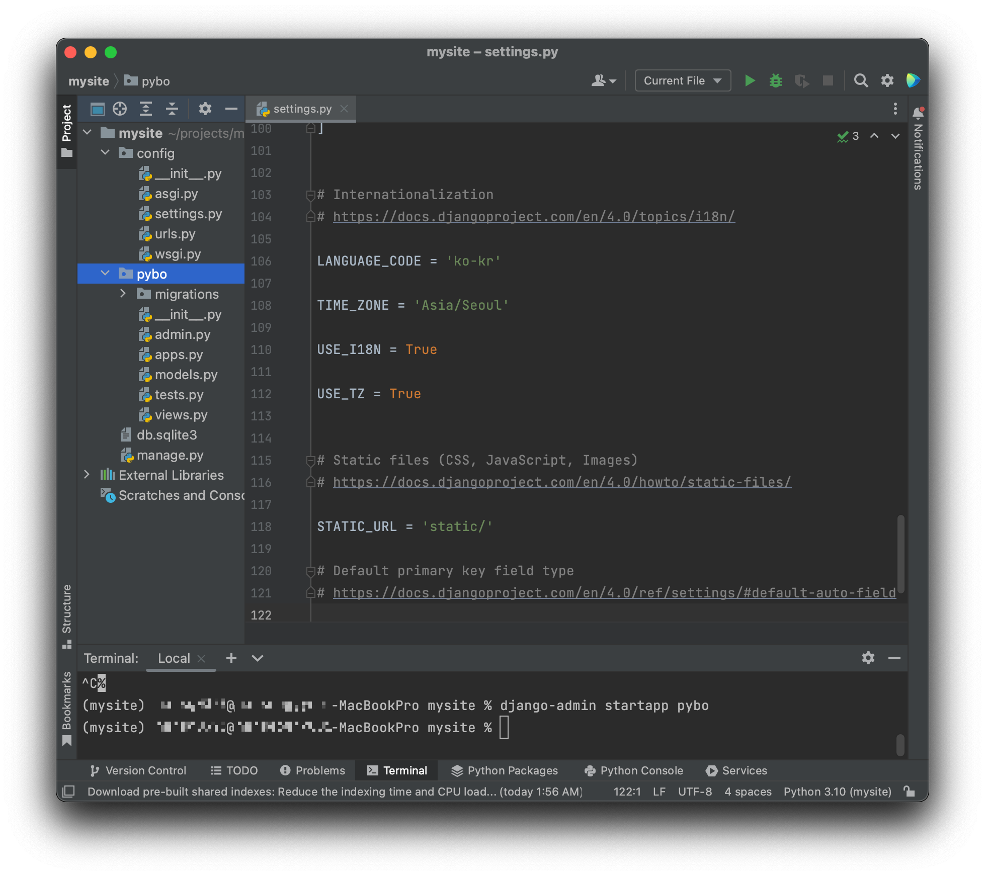 answer_create 별칭에 해당하는 URL 매핑 규칙을 등록했다. 이제 http://localhost:8000/pybo/answer/create/2/ 와 같은 페이지를 요청하면 URL 매핑 규칙에 의해 views.answer_create 함수가 호출된다. 그렇다면 views.answer_create 함수를 만들어줘야 한다. pybo/views.py 파일을 다음과 같이 수정하자.