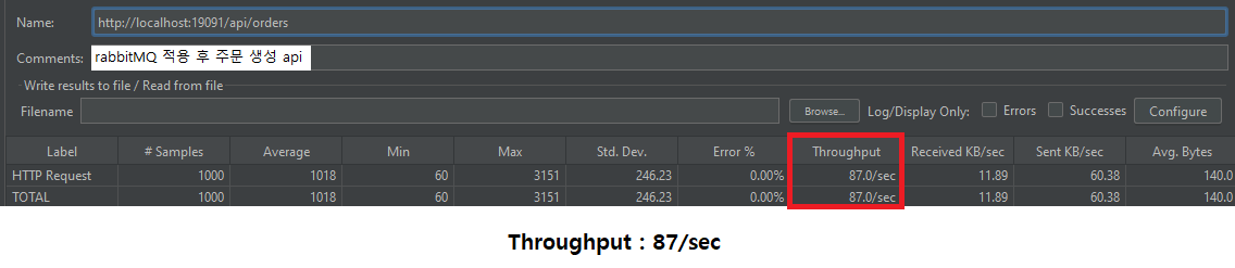 비즈니스 로직 분리: 서비스 간 강결합을 줄이고, 각 단계를 이벤트 중심으로 전환함으로써 **도메인 중심 아키텍처(Domain-driven architecture)**로의 전환 기반 확보RabbitMQ 적용 전 평균 처리량