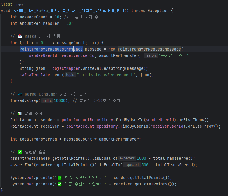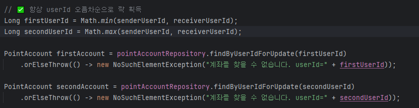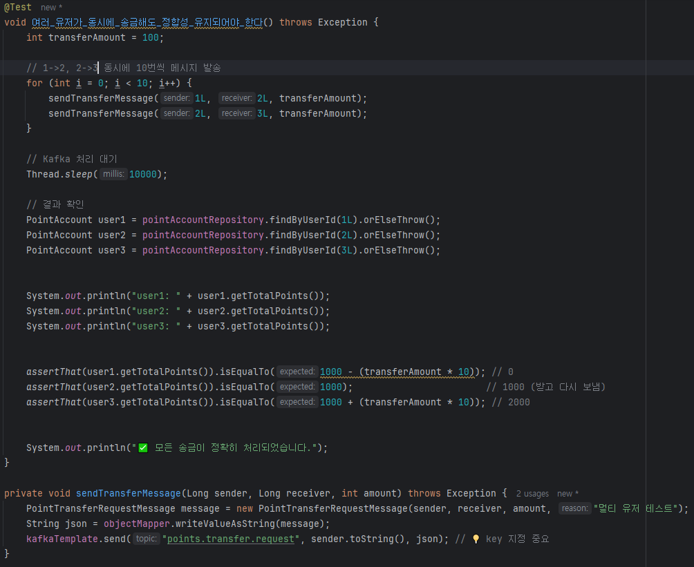 목표: 여러 사용자가 동시에 포인트를 송금할 때 데이터 정합성을 유지하는 로직을 구현하고, 데드락 발생 여부를 확인