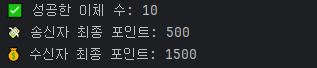 하나의 송신 계좌(sender)에서 수신 계좌(receiver)로 50 포인트씩 송금