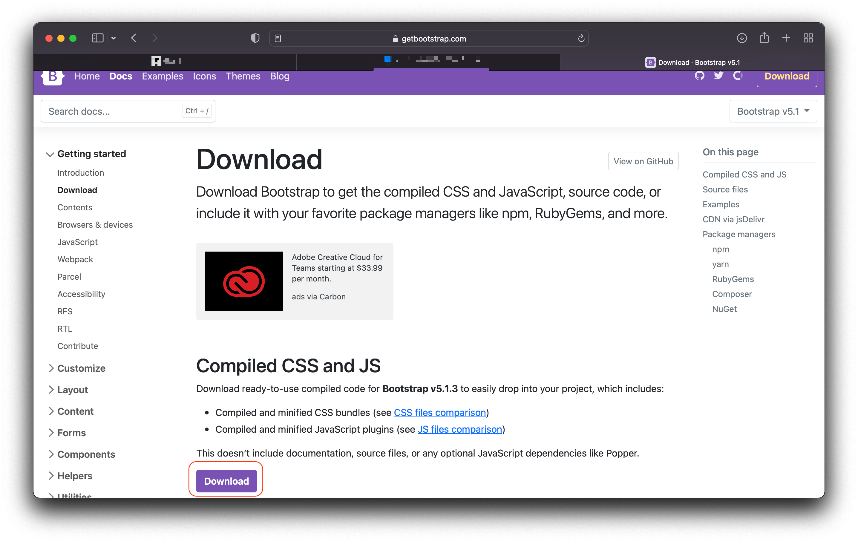 https://getbootstrap.com/docs/5.1/getting-started/download/