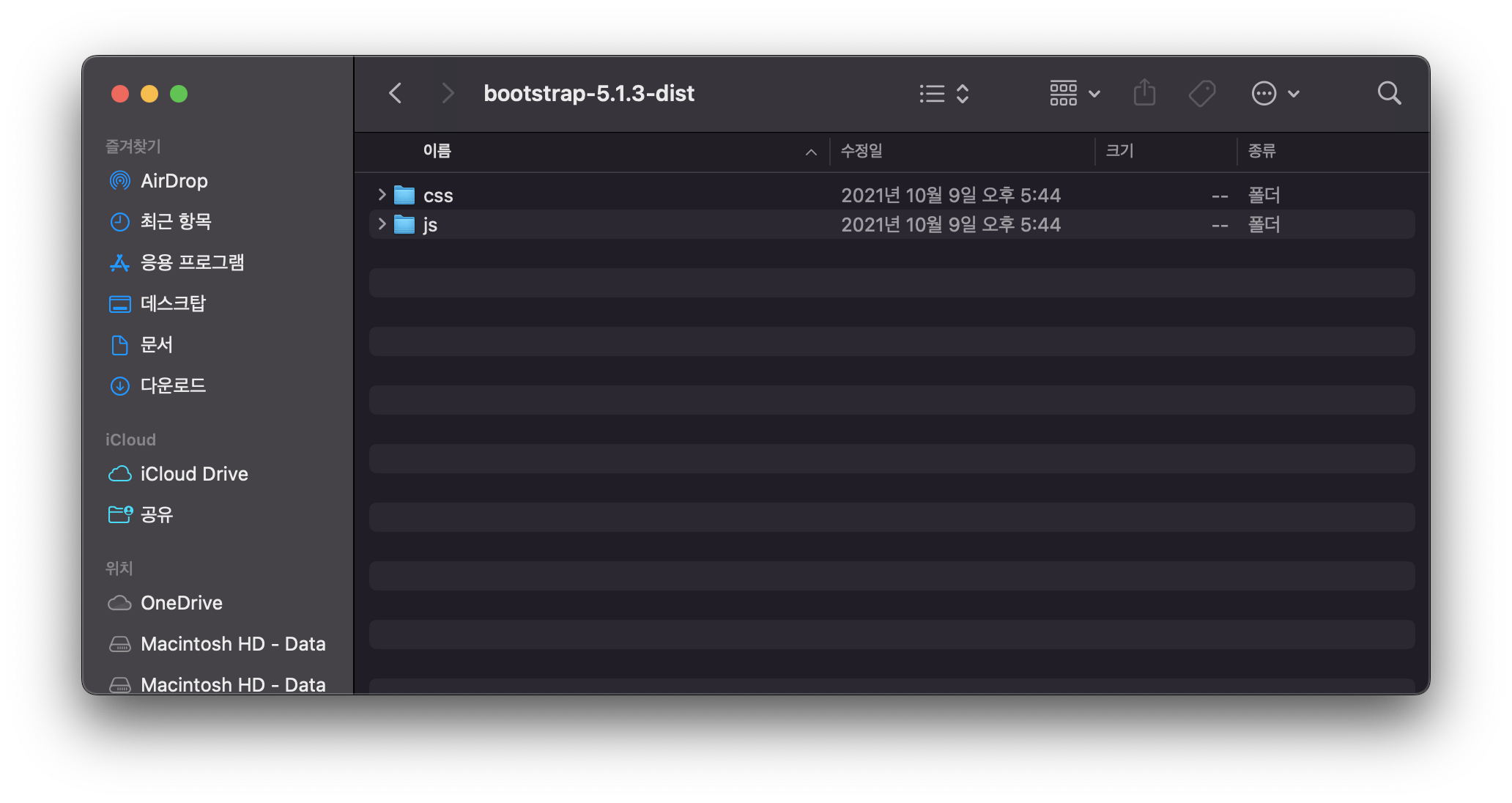 bootstrap.min.css 파일이 있다. 이 다운받은 폴더\css\bootstarp.min.css 파일을
