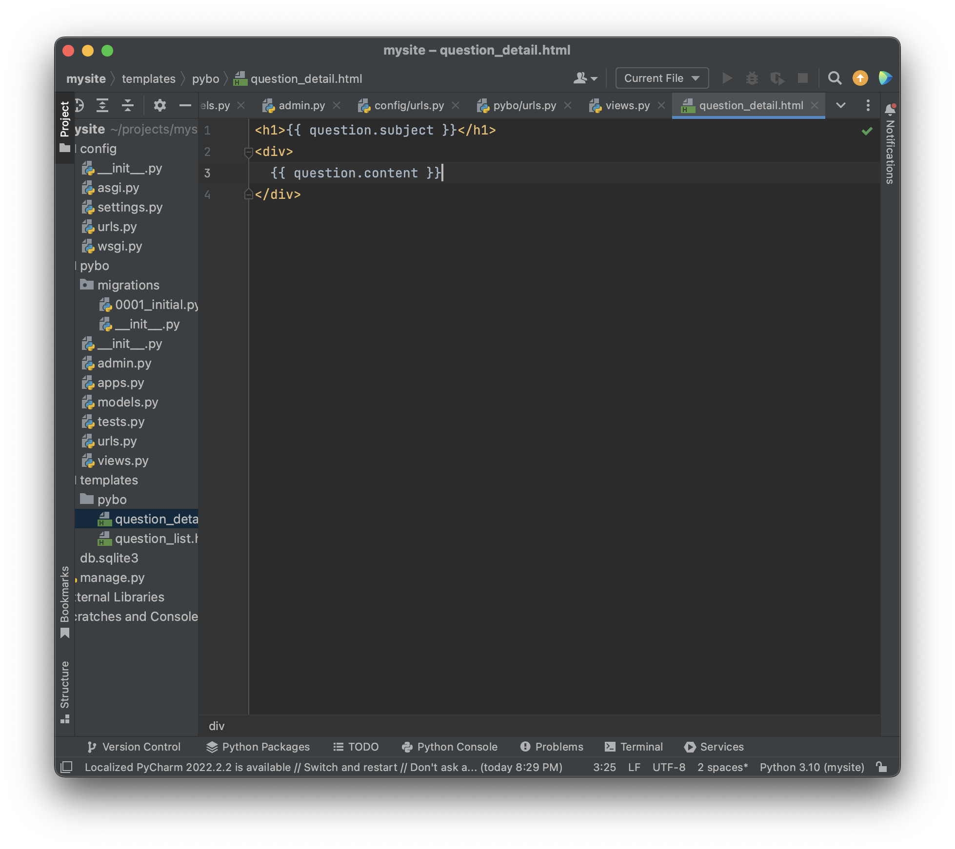 projects/mysite/templates/pybo/question_detail.html 을 만들고 다음과 같이 작성하자.
