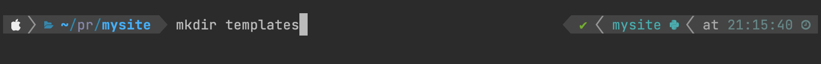 결론적으로 전체 경로는 /Users/<사용자명 >/projects/mysite/templates 이다. 이 디렉토리는 없으므로 다음과 같이 생성하자.
