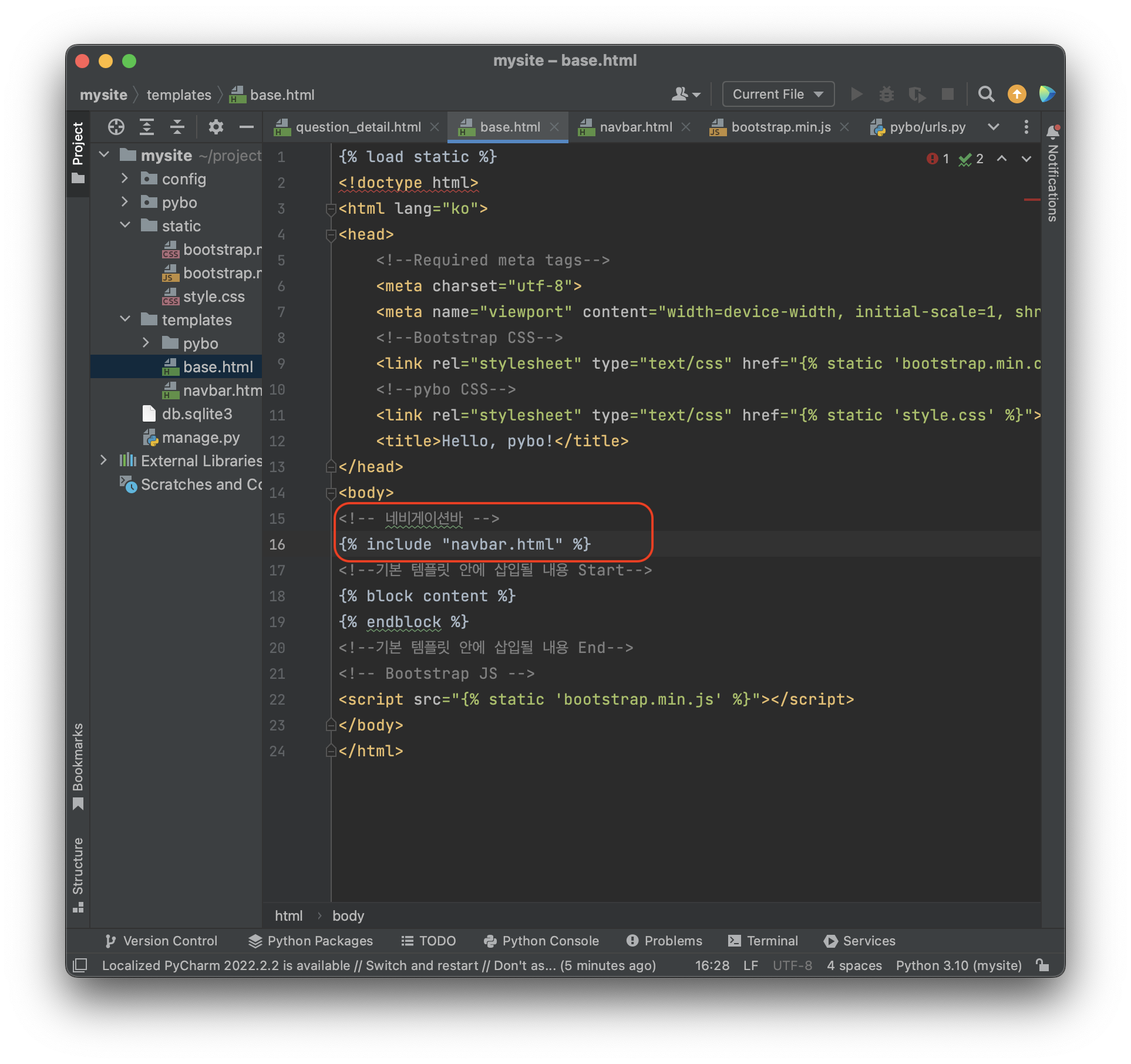 그리고 projects\mysite\templates\base.html 파일을 열어보자.