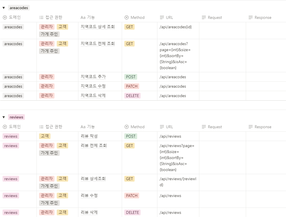 그리고 위의 ERD 설계서를 보고 API 명세서를 작성해보았다.