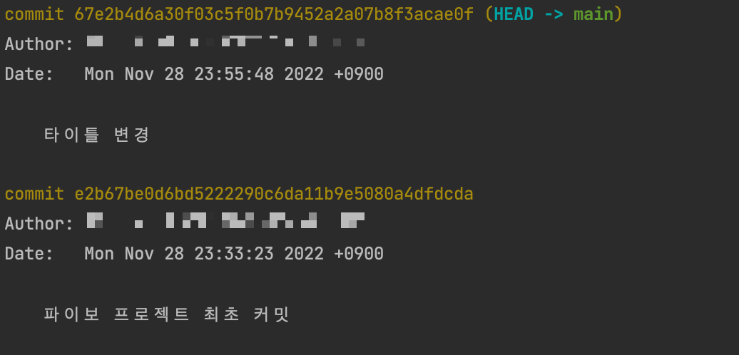 다시 <title>파이보</title> 로 변경하고 git commit 명령을 해보자.