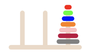 세 개의 장대가 있고 첫 번째 장대에는 반경이 서로 다른 n개의 원판이 쌓여 있다. 각 원판은 반경이 큰 순서대로 쌓여있다. 이제 수도승들이 다음 규칙에 따라 첫 번째 장대에서 세 번째 장대로